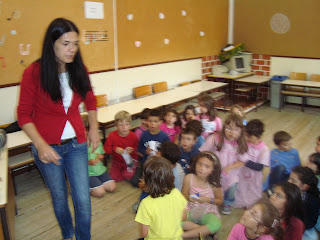 A professora Cristiana e os amigos do ano anterior receberam-nos com uma história - " O Leão Comilão".