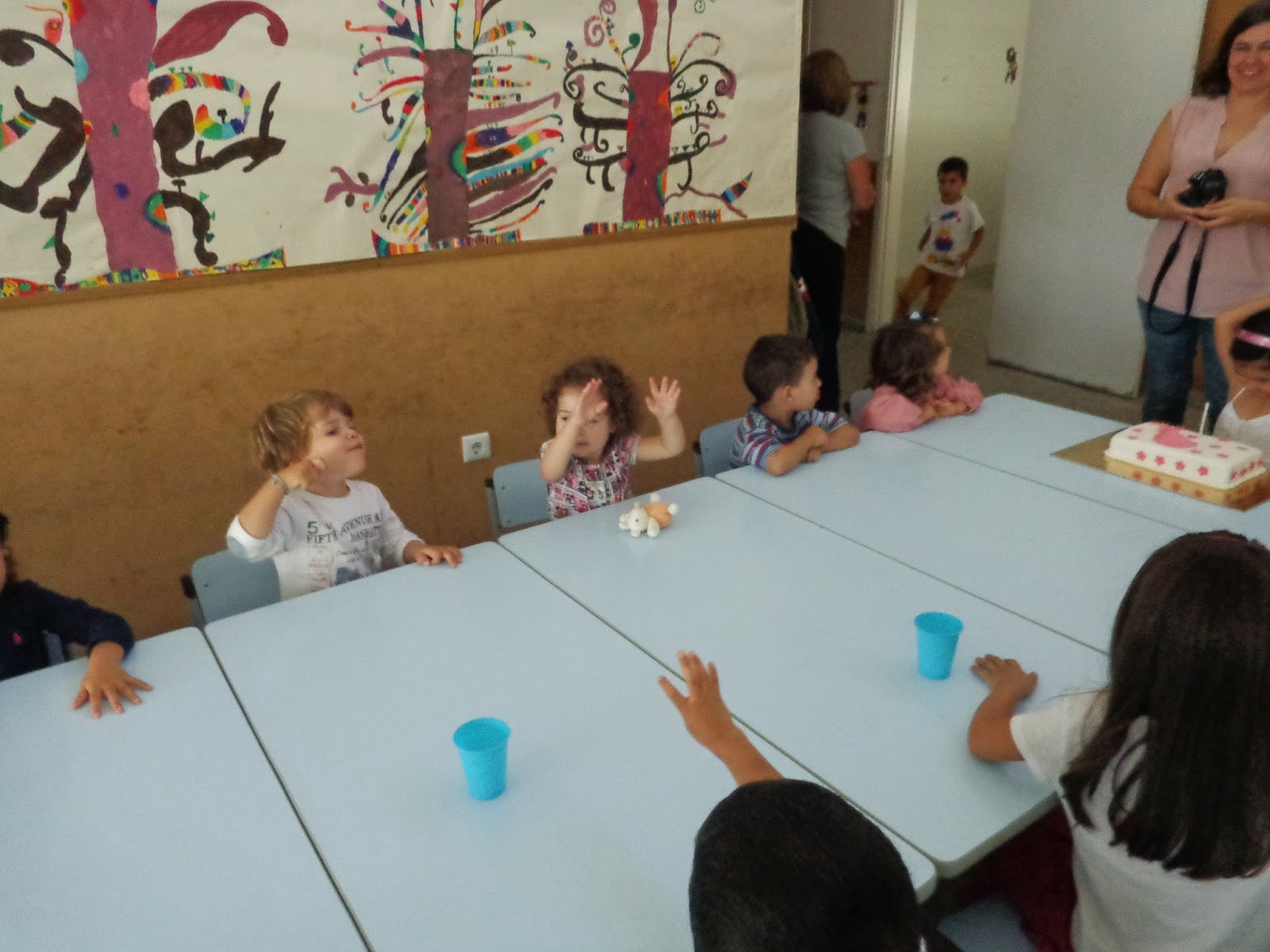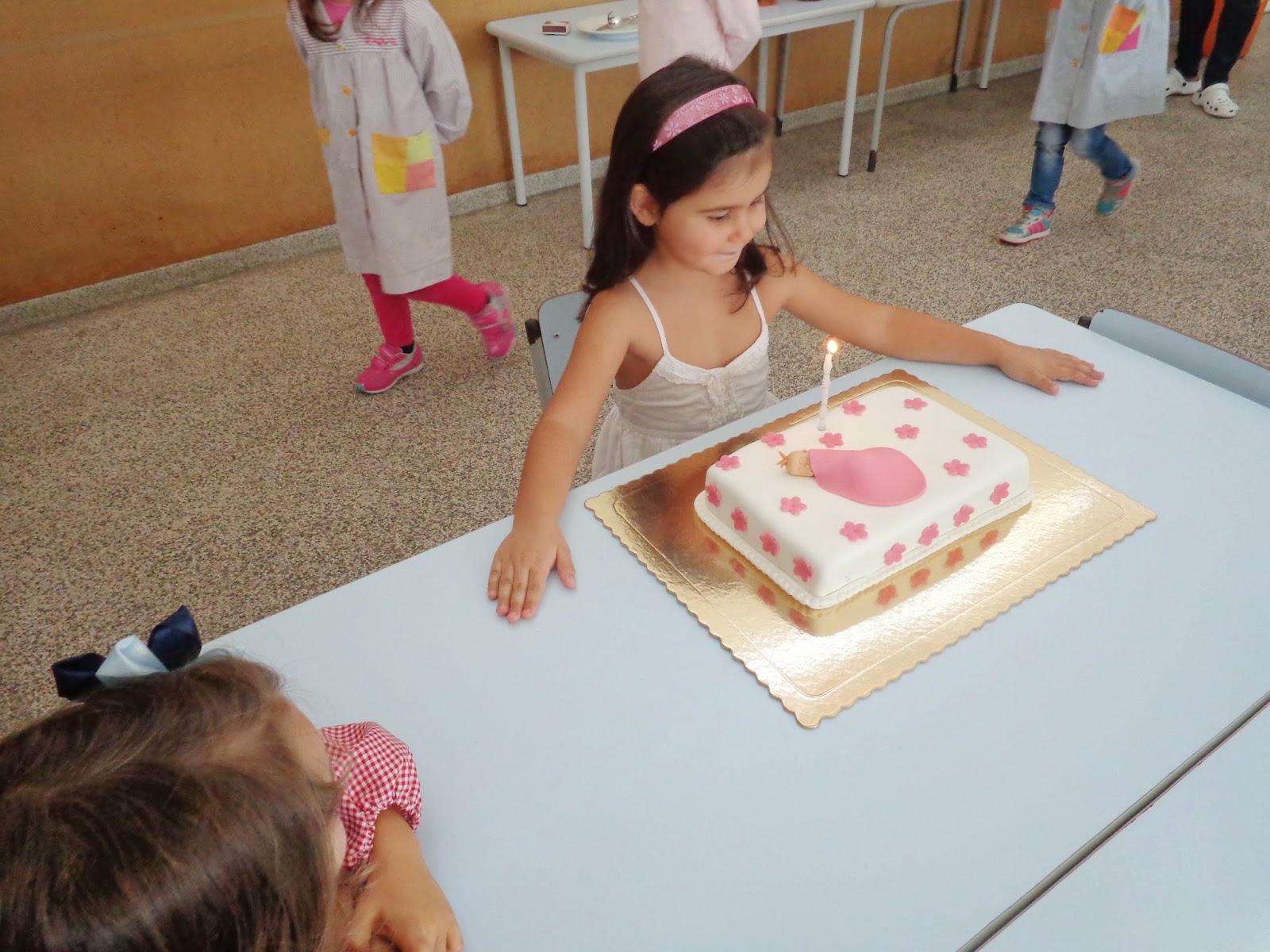 Cantamos os parabéns, e a Mimi soprou a vela correspondente aos 4 anos que fez.