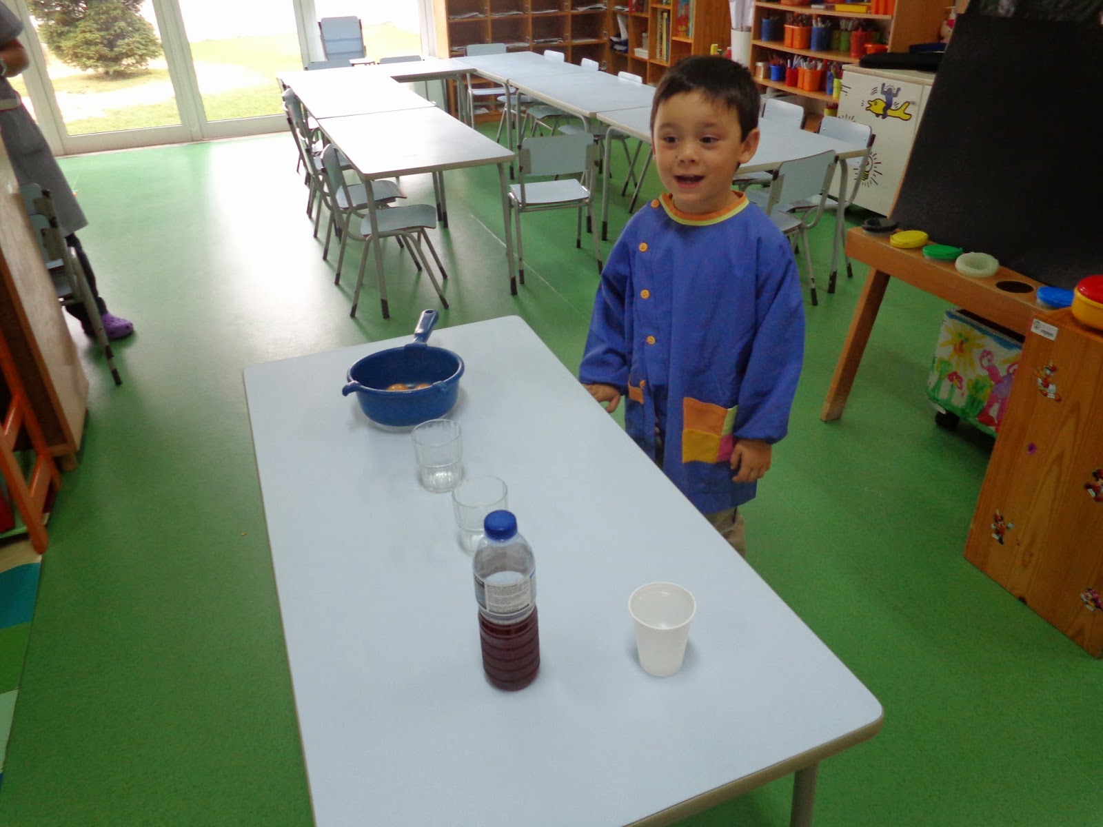 hipóteses sobre o que se iria passar, e a opinião mais consensual do grupo, foi de que : “O ovo que está no copo com