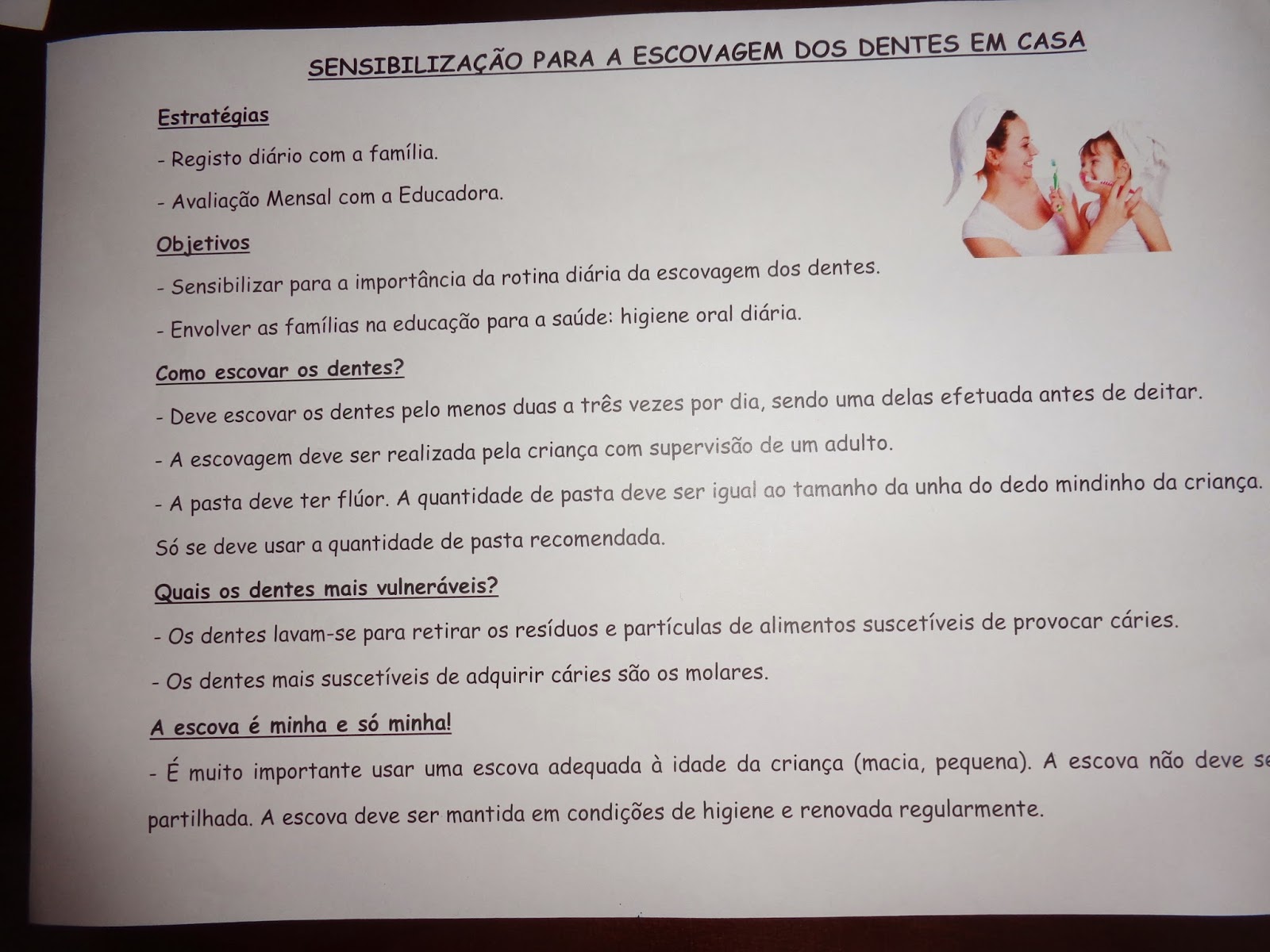passado levamos para casa uma ficha da lavagem dos dentes. “Não levamos este ano?” – Disse ela.