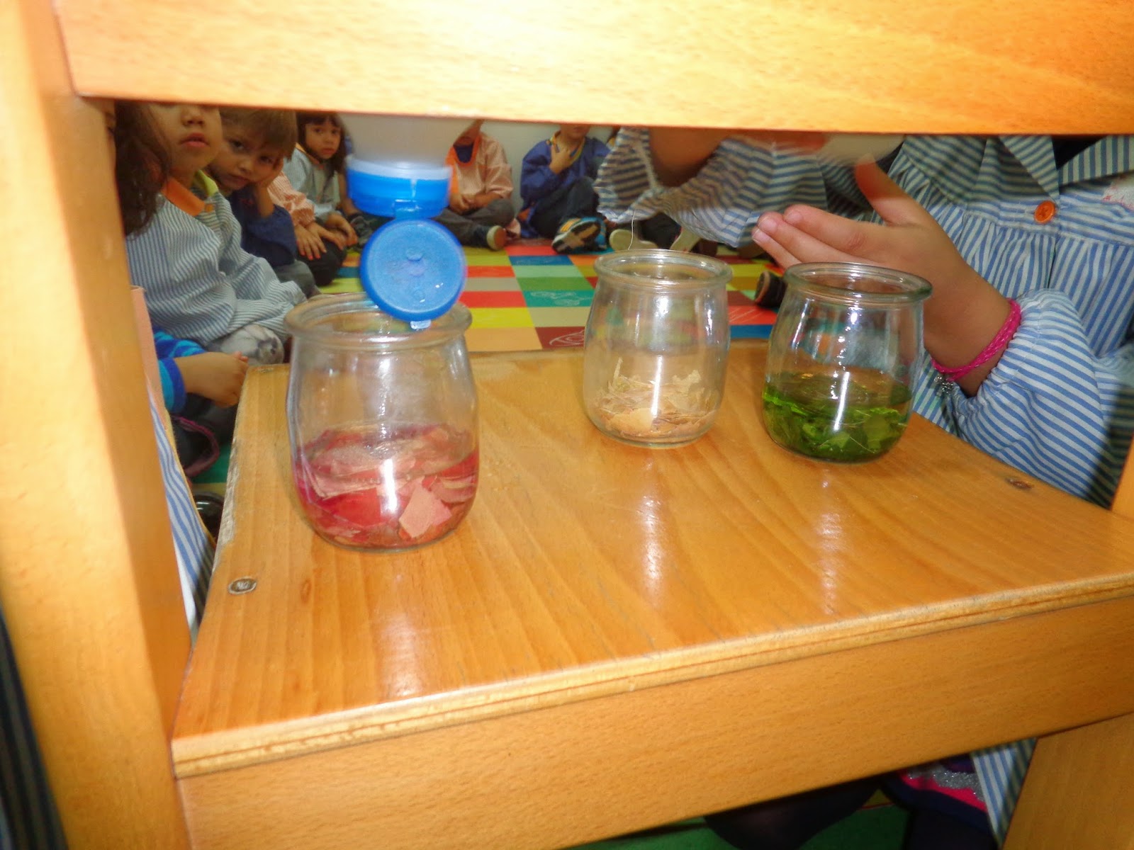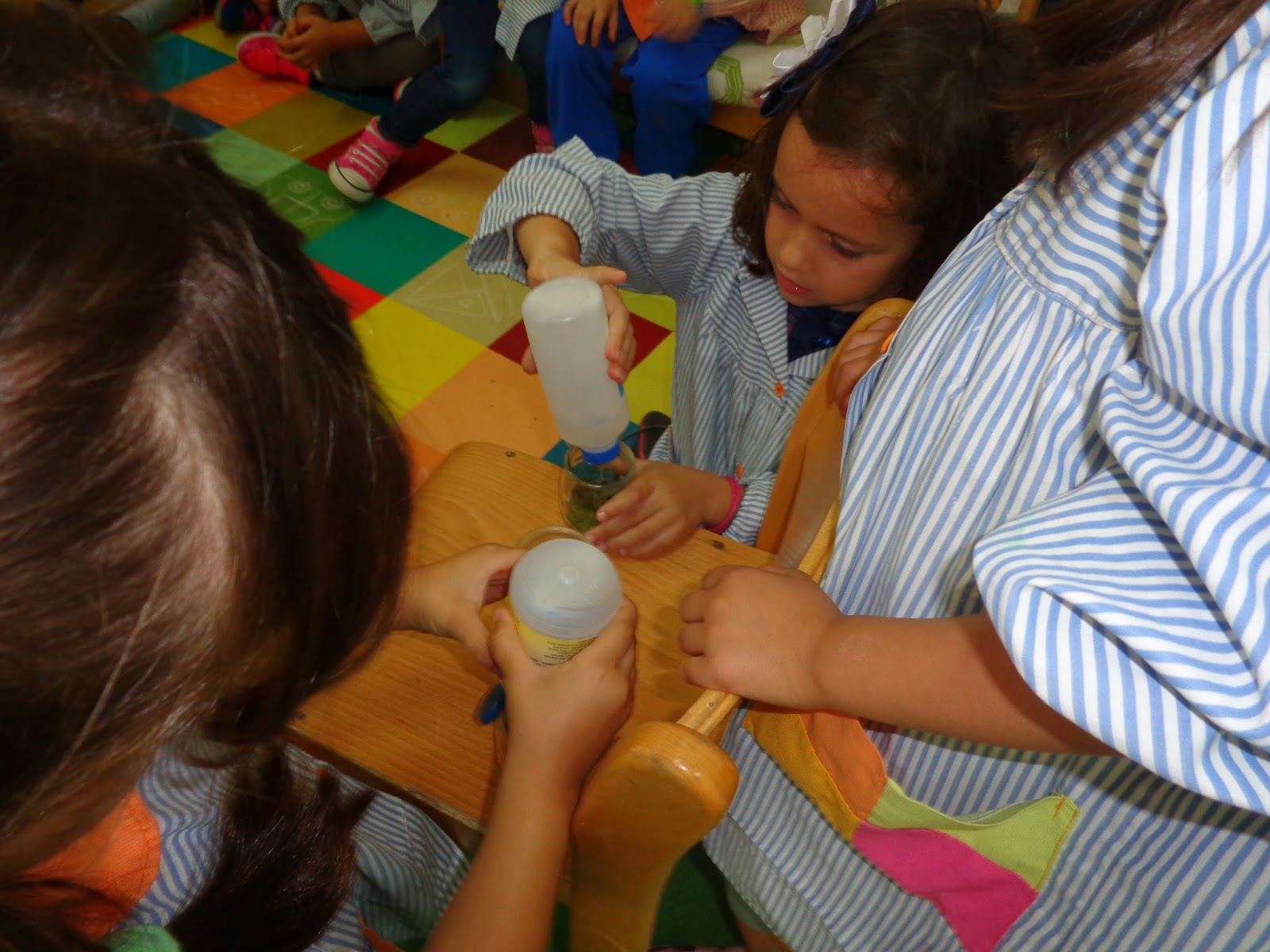 Para isso, interagimos com os meninos das outras salas, que ajudaram na experiência. Aqui na "sala E"...