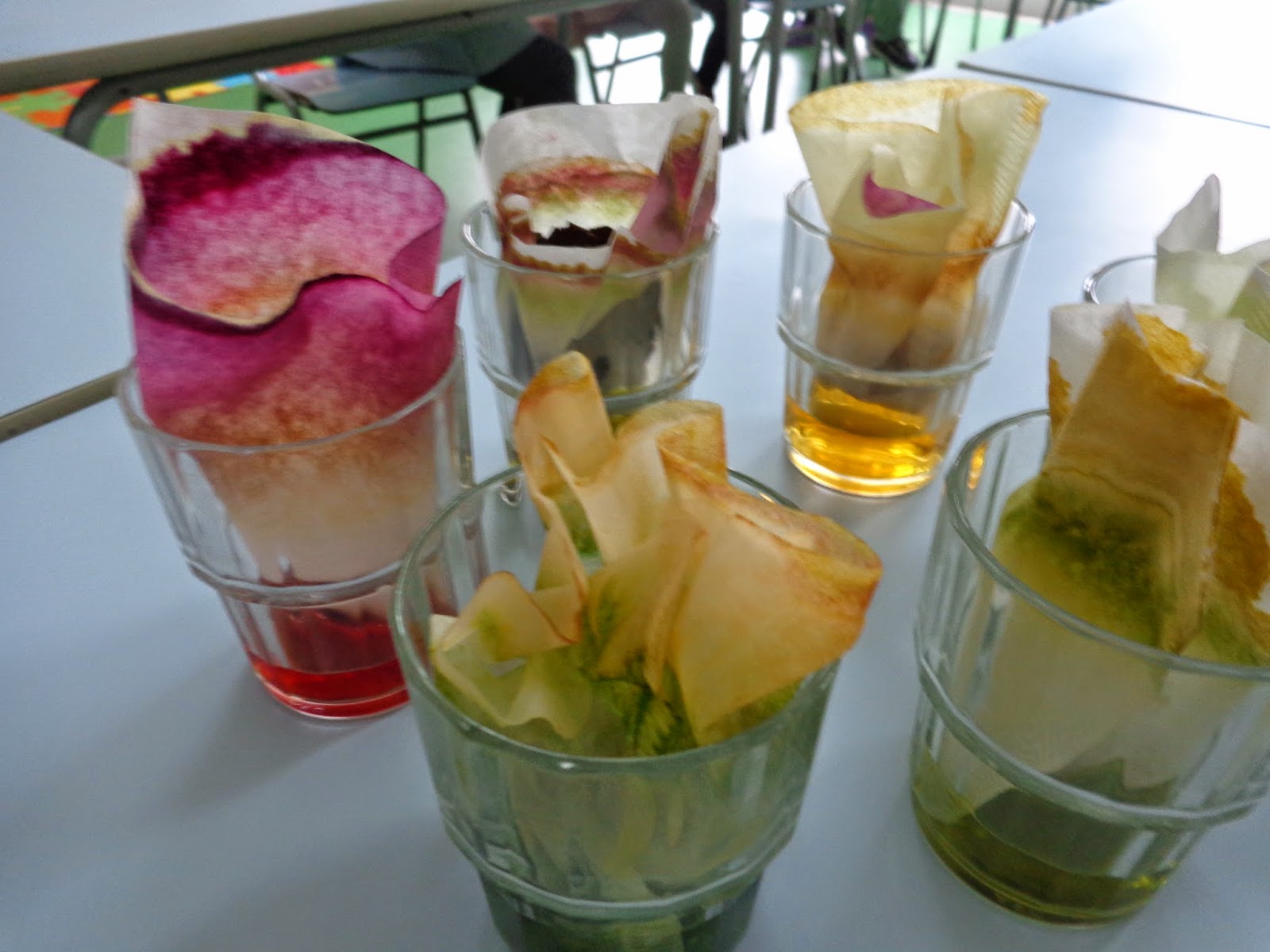 No desenrolar da experiência (nas duas salas) seguimos o mesmo protocolo de ontem, que podem ver aqui Cromatografia das Folhas