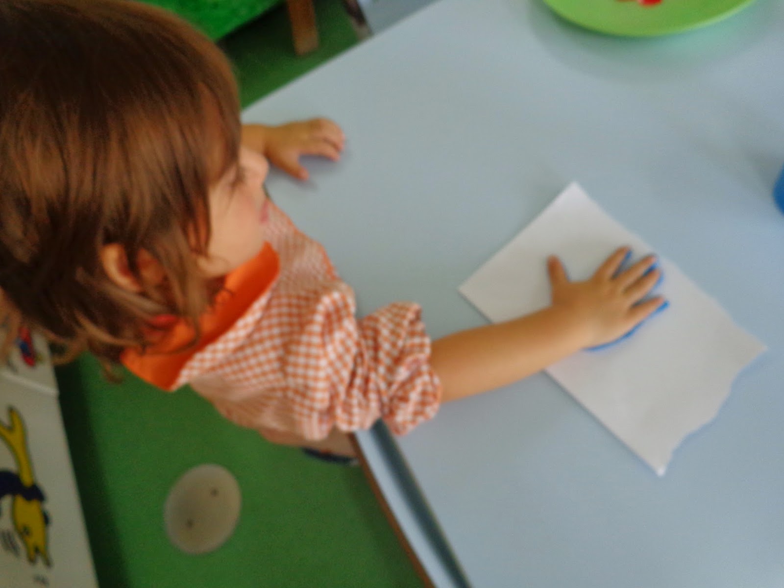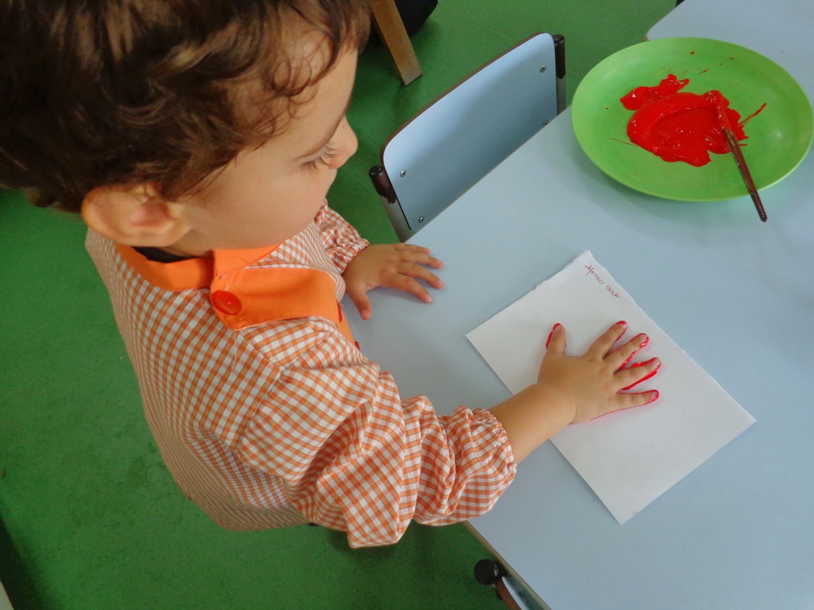 Um dos lados estava pronto...Faltava o outro. Metemos as mãos na tinta, assim: