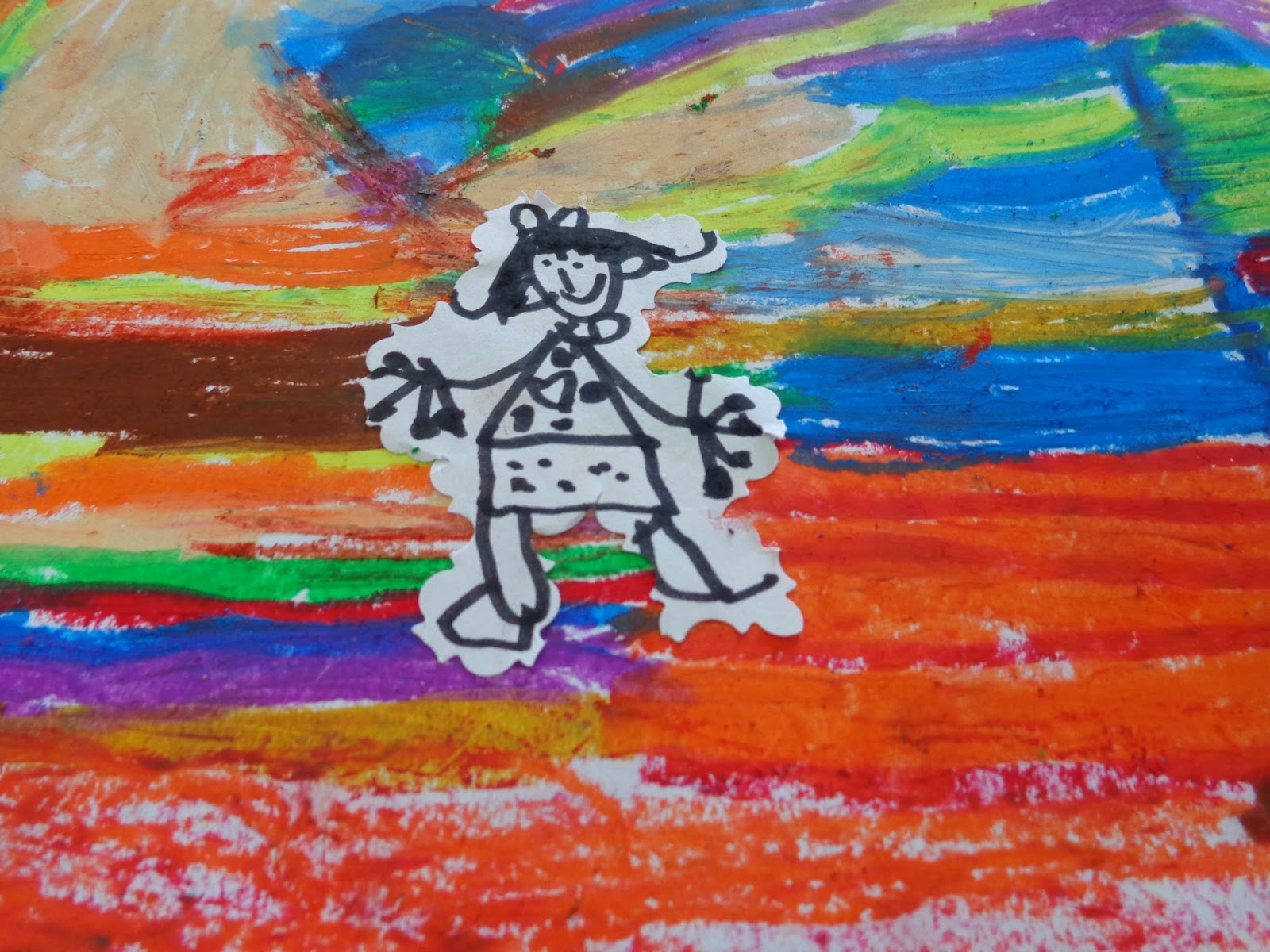 De seguida fizemos o nosso autorretrato. Alguns de nós já sabiam que o autorretrato é um desenho ou pintura de nós mesmos, e os que não sabiam, descobriram neste momento. Foram feitos apenas com um marcador preto, porque o iríamos adicionar na pintura inspirada em Paul Klee.
