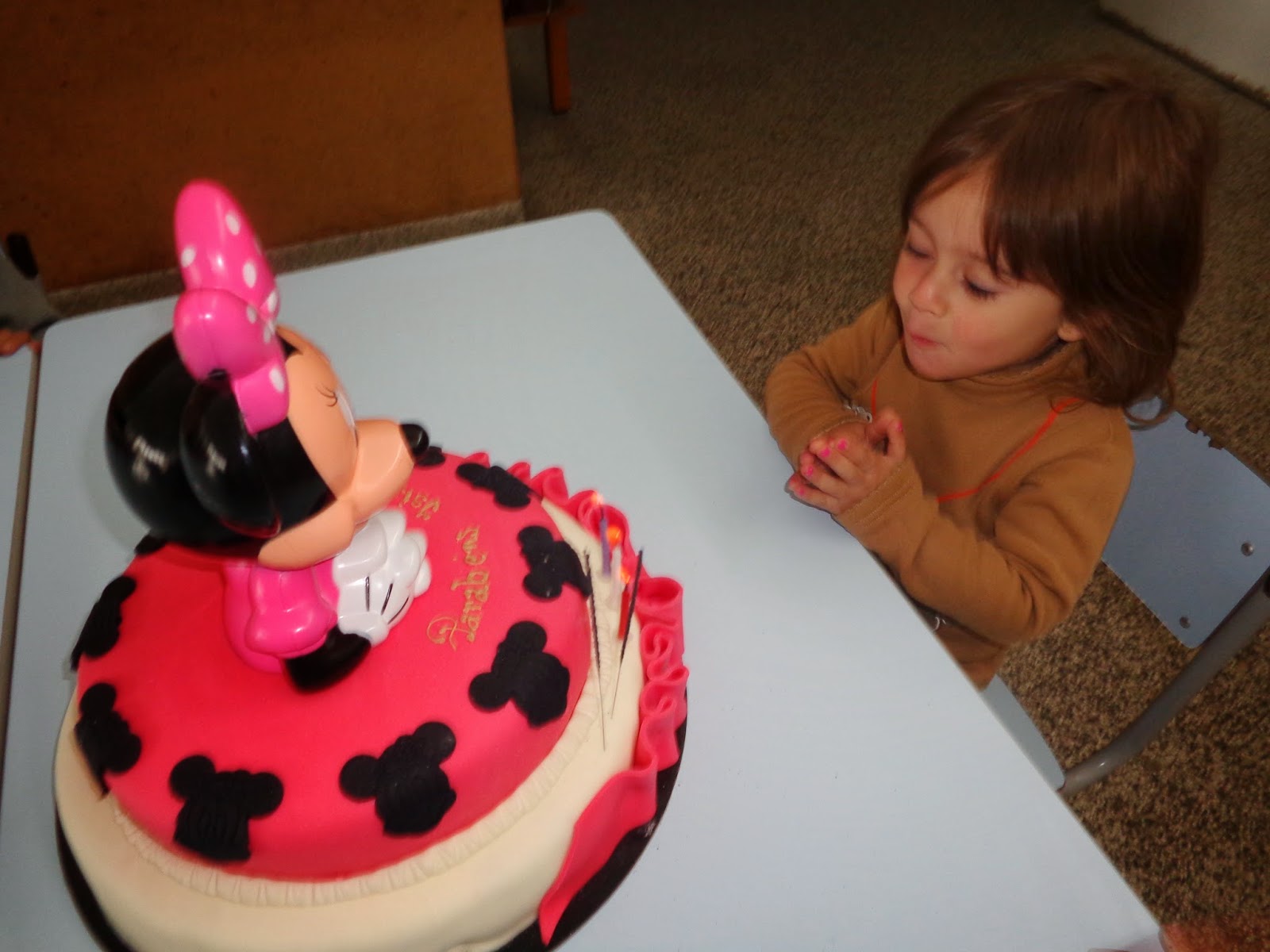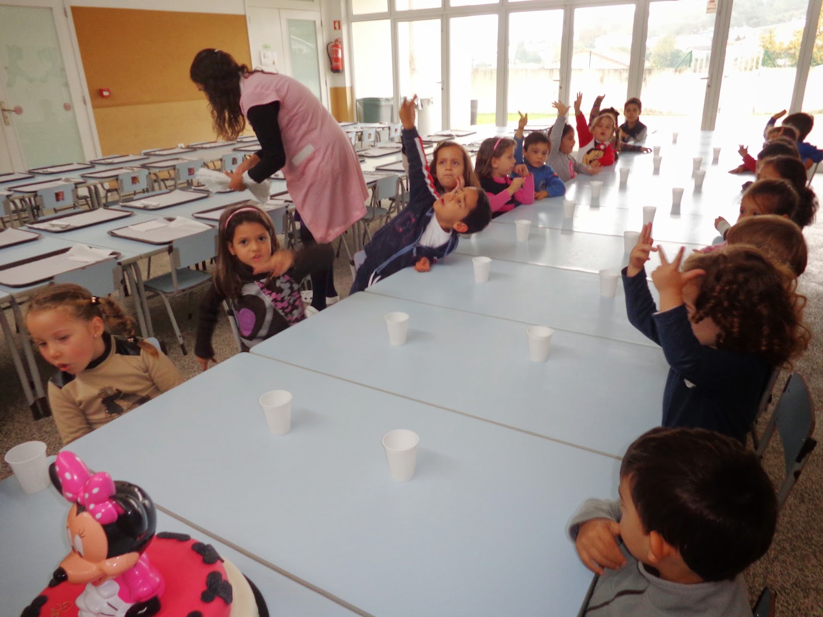 A Isis fez 3 anos no sábado. É uma das mais novas desta sala. Como o aniversário calhou ao fim de semana, trouxe hoje, como podem ver, um belo e grande bolo da Minnie, para comemorar connosco.