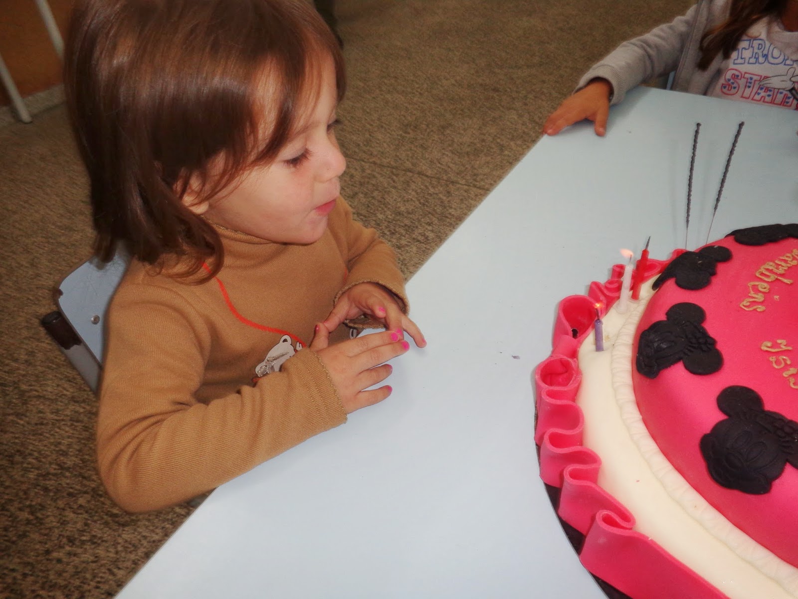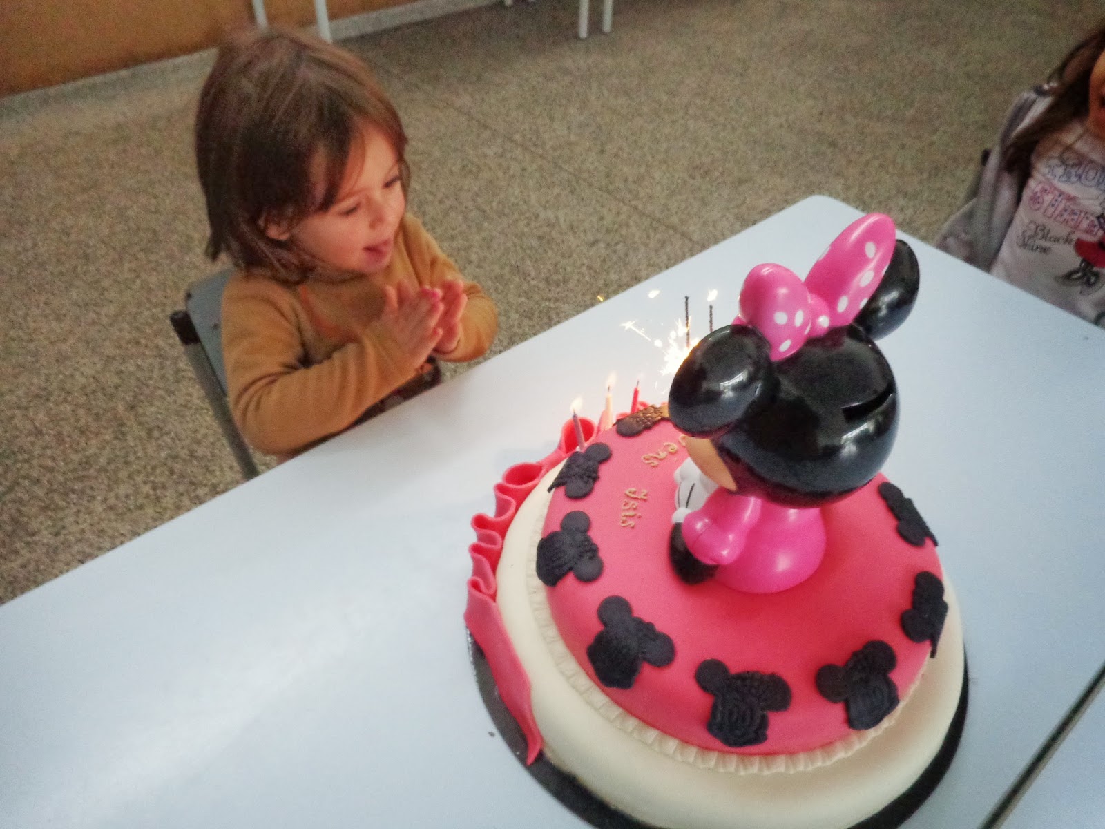 Enquanto se partia o bolo, para podermos comer, a Isis agarrava-se à Minnie.