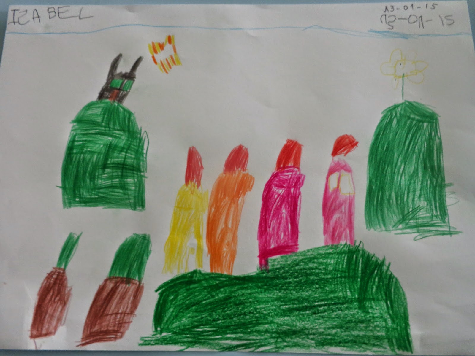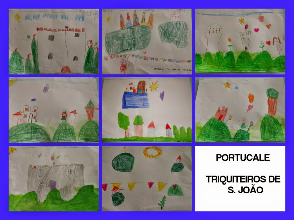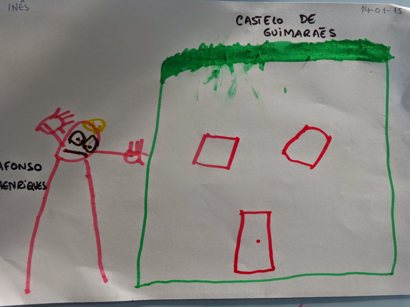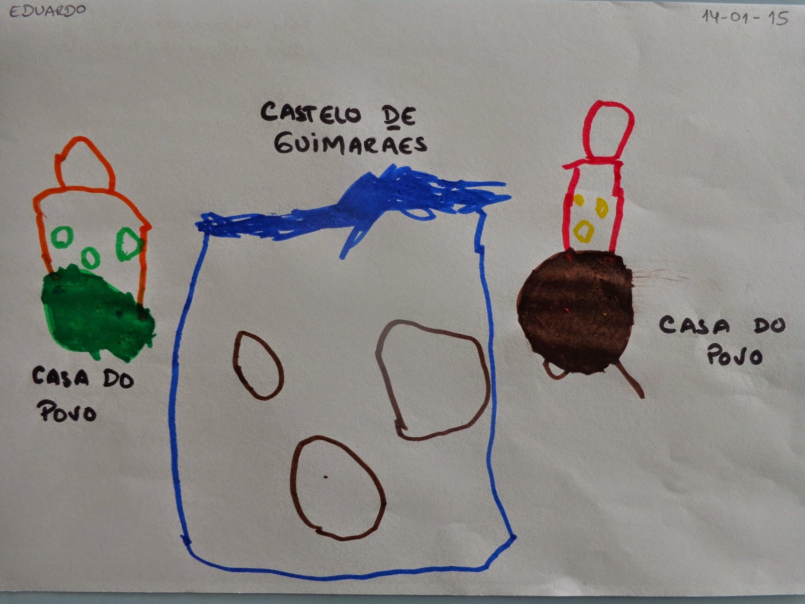 E como era o Condado Portucalense, quando o Afonso Henriques lá viveu? Metemos mãos à obra, e mostramos como já estamos bem crescidos. Nós os mais novos (3 anos) já começamos a representar a figura humana, a fazer linhas verticais e horizontais, círculos... As cores começam a aparecer...Atribuímos significado ao que fazemos, senão vejamos...