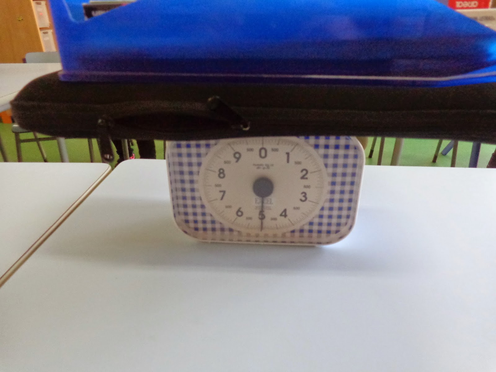 Será que a balança que temos na sala dá para ver quanto é 5 Kgs? Não, não dá, porque é uma balança que só pesa até 2 Kgs.