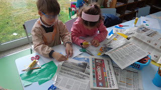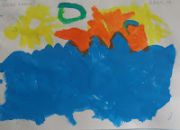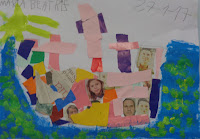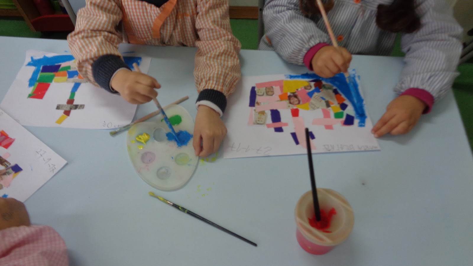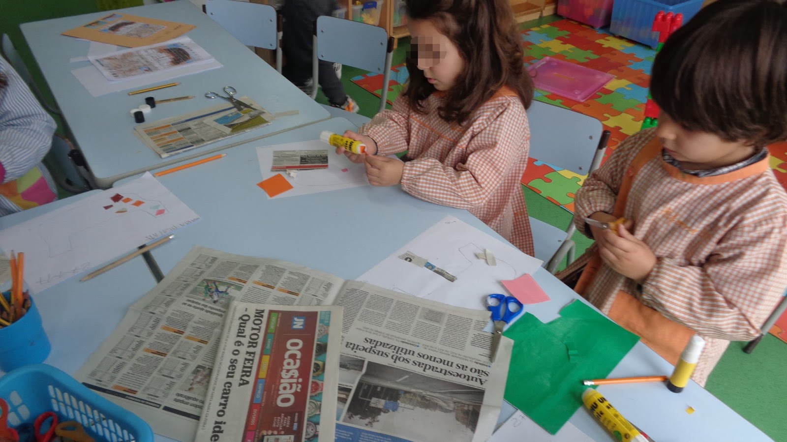 Decidimos também pintar o mar e fazer colagens nas caravelas, em tempo de pequeno grupo. Os mais novos estiveram só de volta do mar...Fizeram pinturas bem reais!
