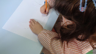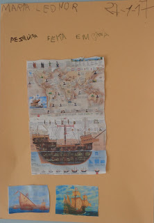 Também na sexta feira passada, a ML trouxe a pesquisa que fez em casa sobre os Descobrimentos e esteve a fazer a comunicação ao grande grupo. Mais tarde, fez o seu cartaz.