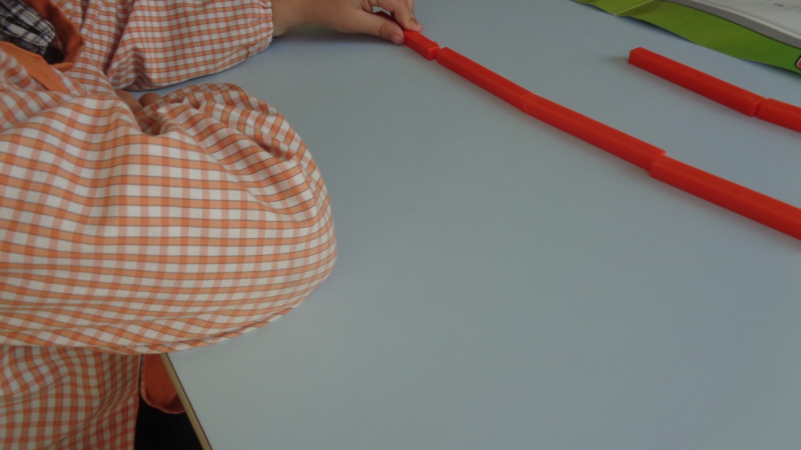 Qual era o mais novo? E o mais velho? E assim começa o nosso desafio matemático. As barras de Cuisenaire, são uma boa ajuda para esta atividade de grupo dos 5 anos.