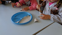 De volta, pois ontem não tivemos a Triquiteira Mor, estivemos entre outras atividades, a desenvolver capacidades expressivas e criativas através de exploração e produção plástica.