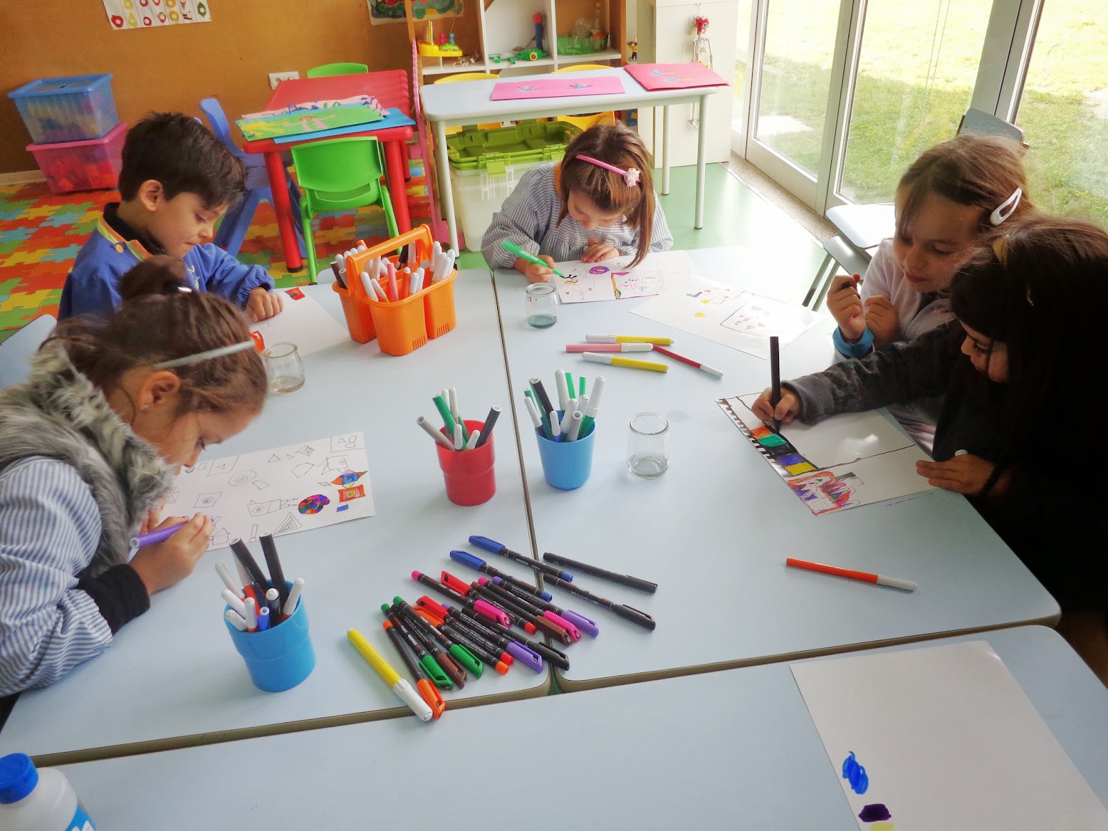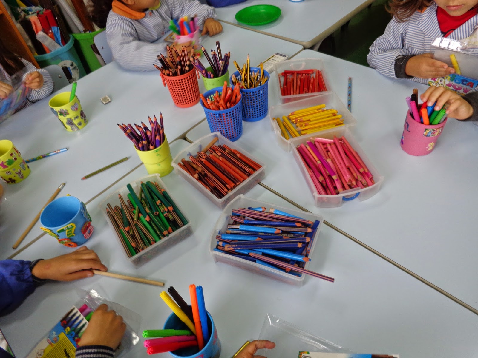 lápis e marcadores por categorias, trabalhando noções matemáticas, (côr,
