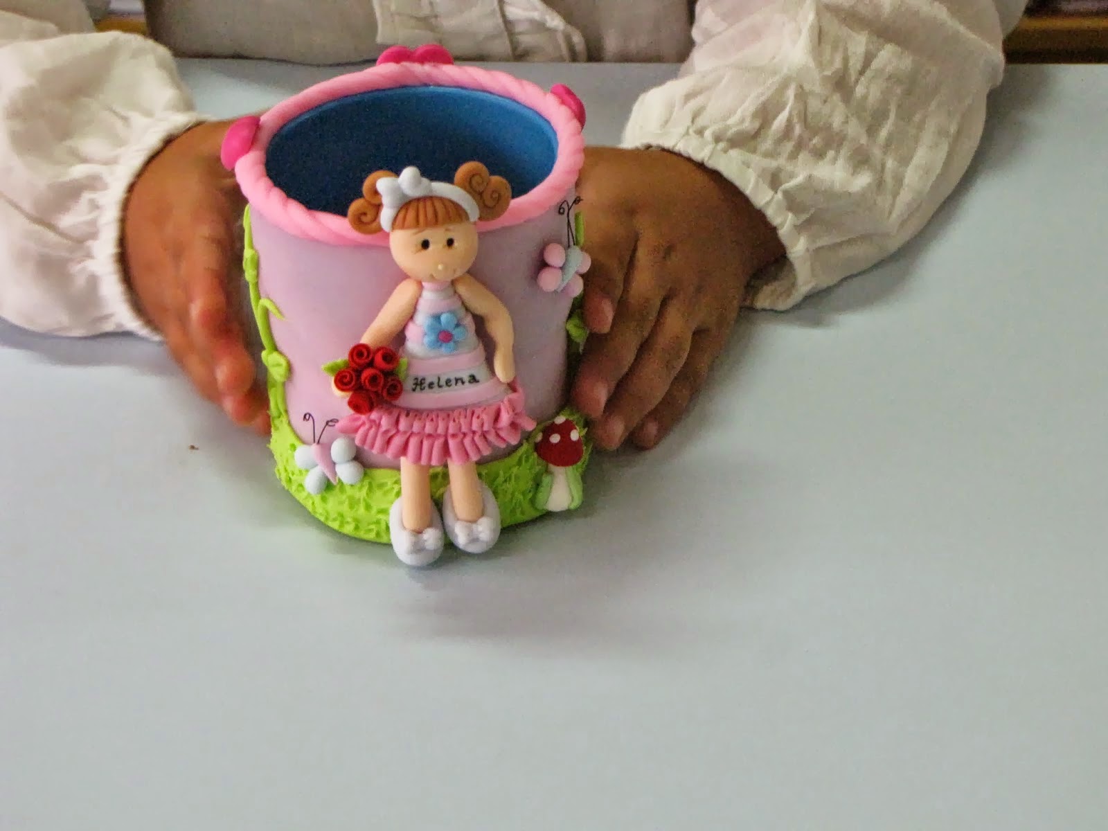 e a Mãe decoraram o copo com massa de biscuit, e até ao momento, este