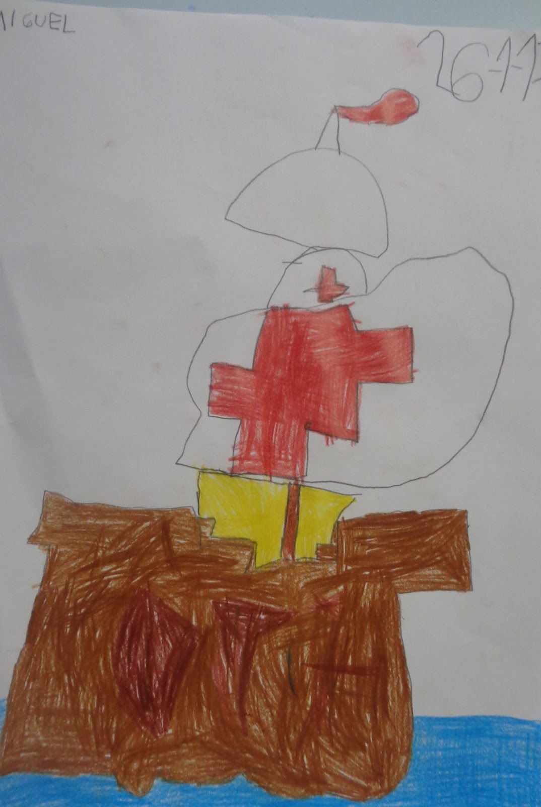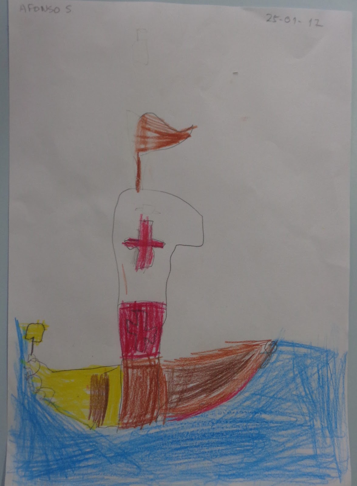 O AF trouxe de casa alguma informação que depois partilhou com os colegas. Entretanto, fez mais pesquisas na Internet e em conjunto com alguns dos elementos do projeto, estiveram a elaborar um cartaz, sobre alguns navegadores, sobre os barcos que estes usavam, bem como, sobre os instrumentos que necessitavam para navegar.