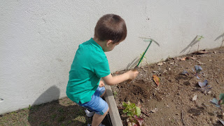 ... regar a horta a várias mãos (pelos vistos , gostamos de fazer como os bombeiros) ... ou regar as novas plantinhas do jardim, com um regador...
