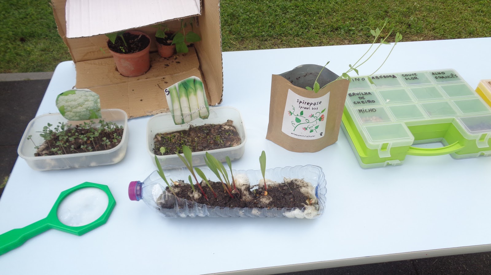 ... transladação de germinação de sementes de girassóis para a horta, ou de sementes de flores para o jardim…